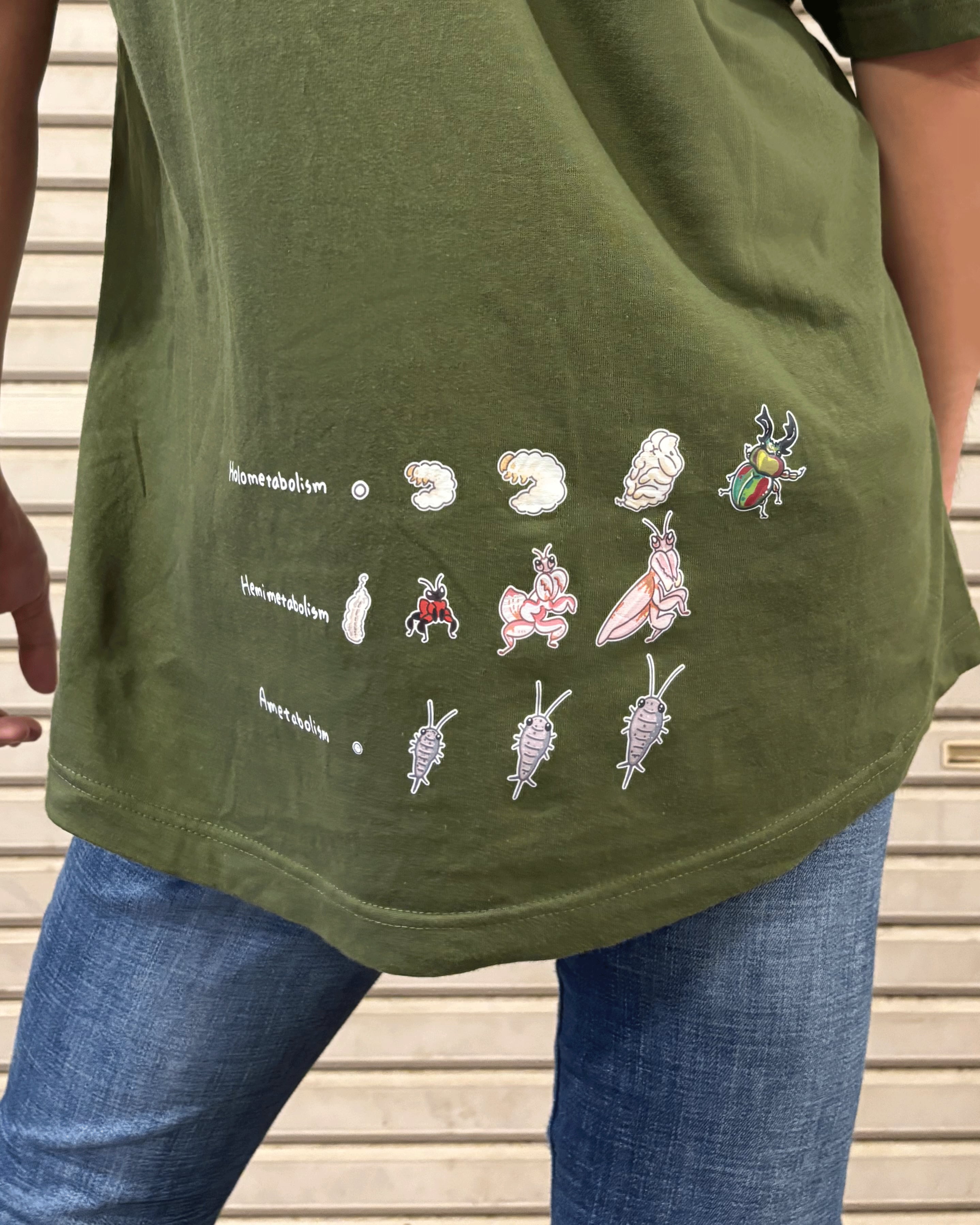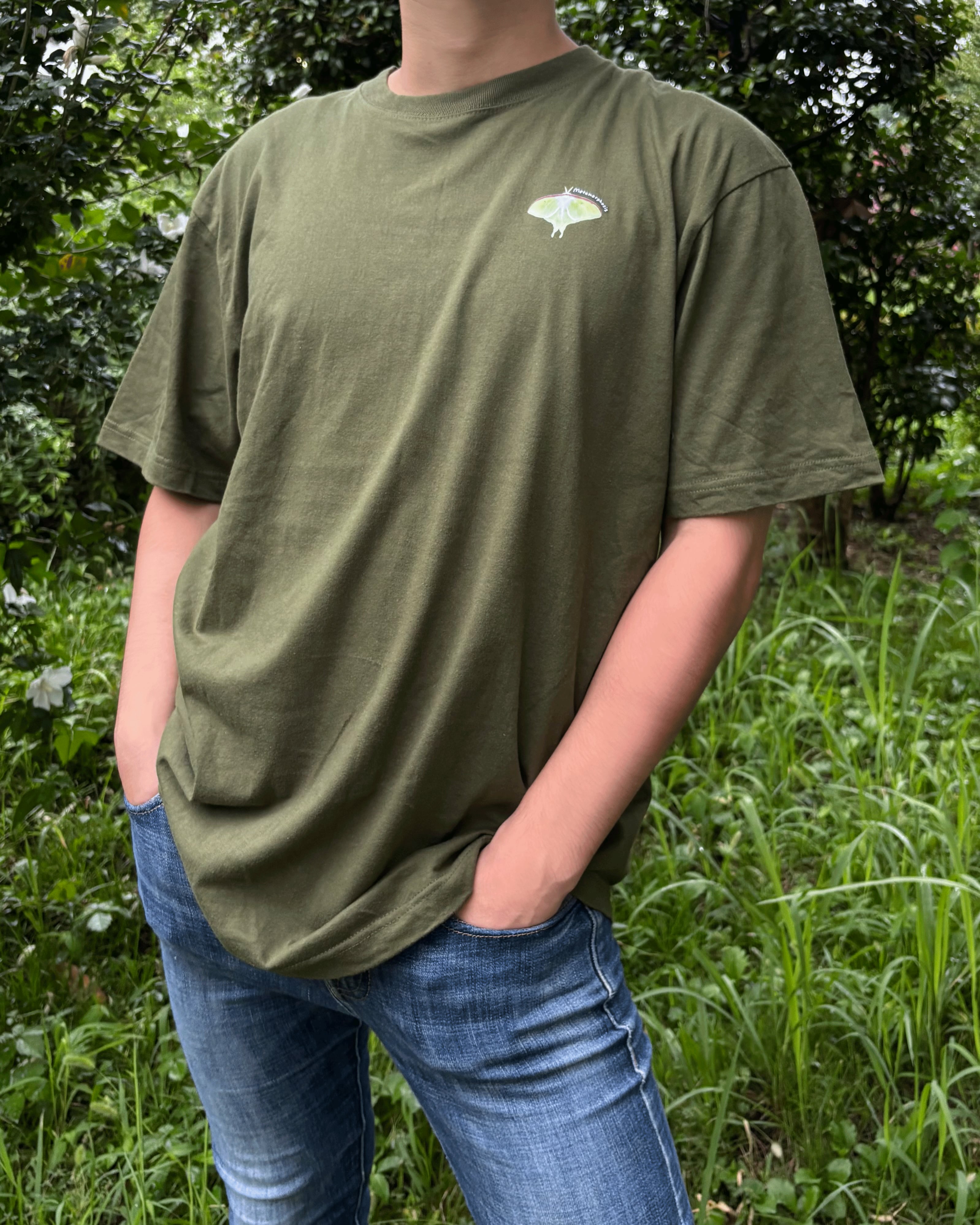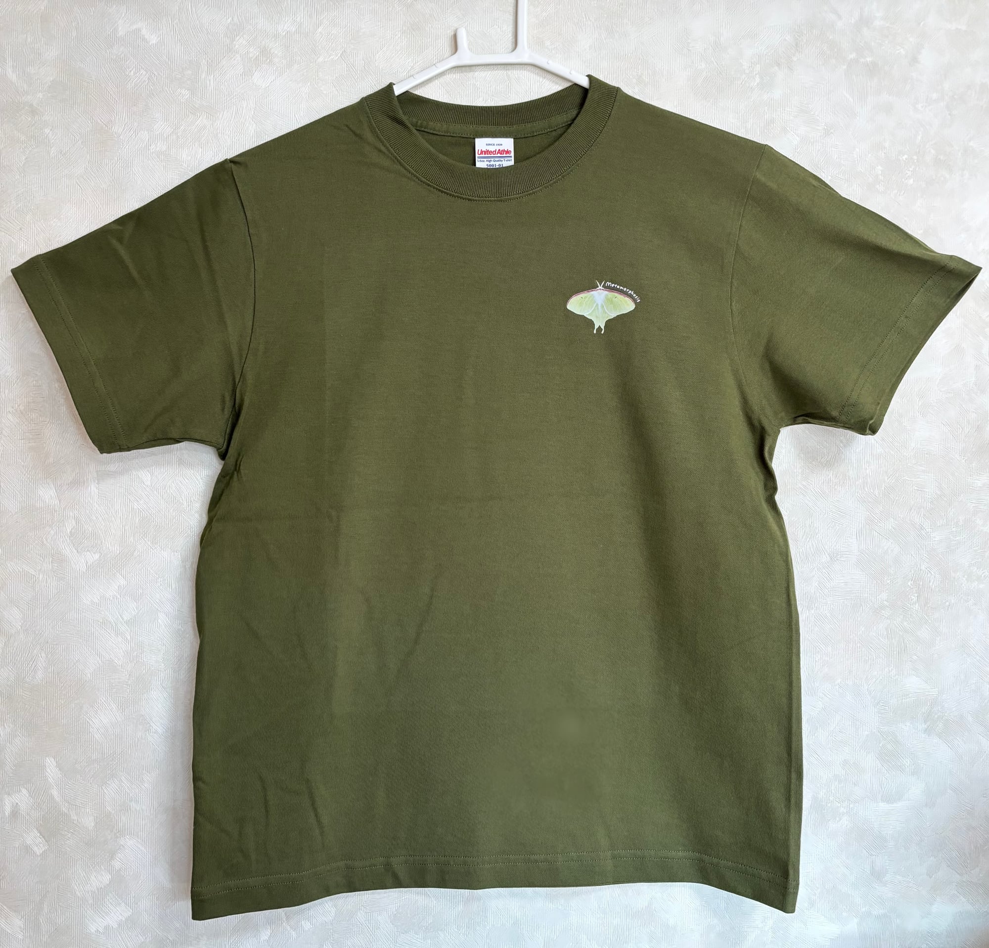 ●素材:セミコーマ糸(綿100%) ●サイズ:S~XL ●カラー:シティグリーン ●デザイン位置:左胸、背面右肩