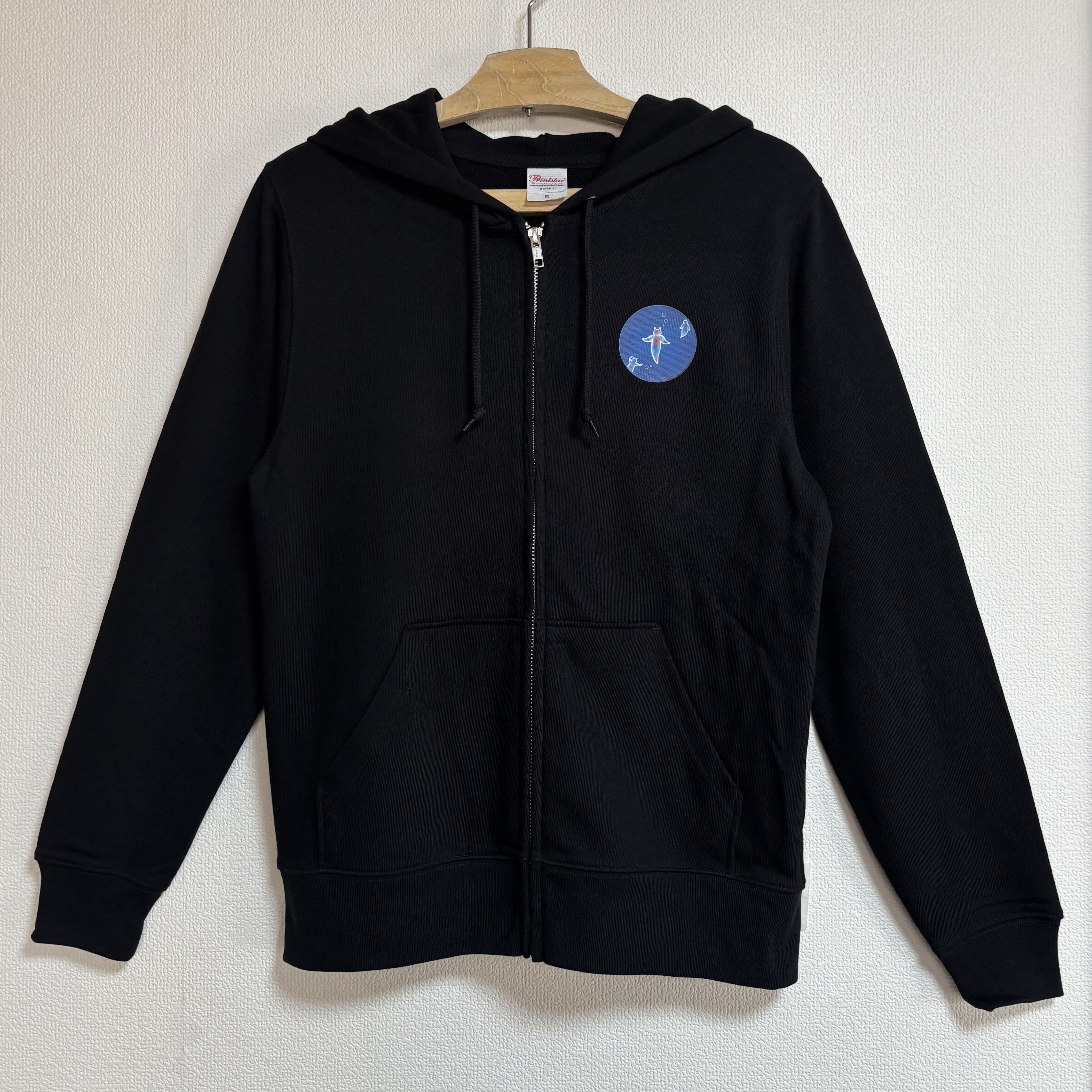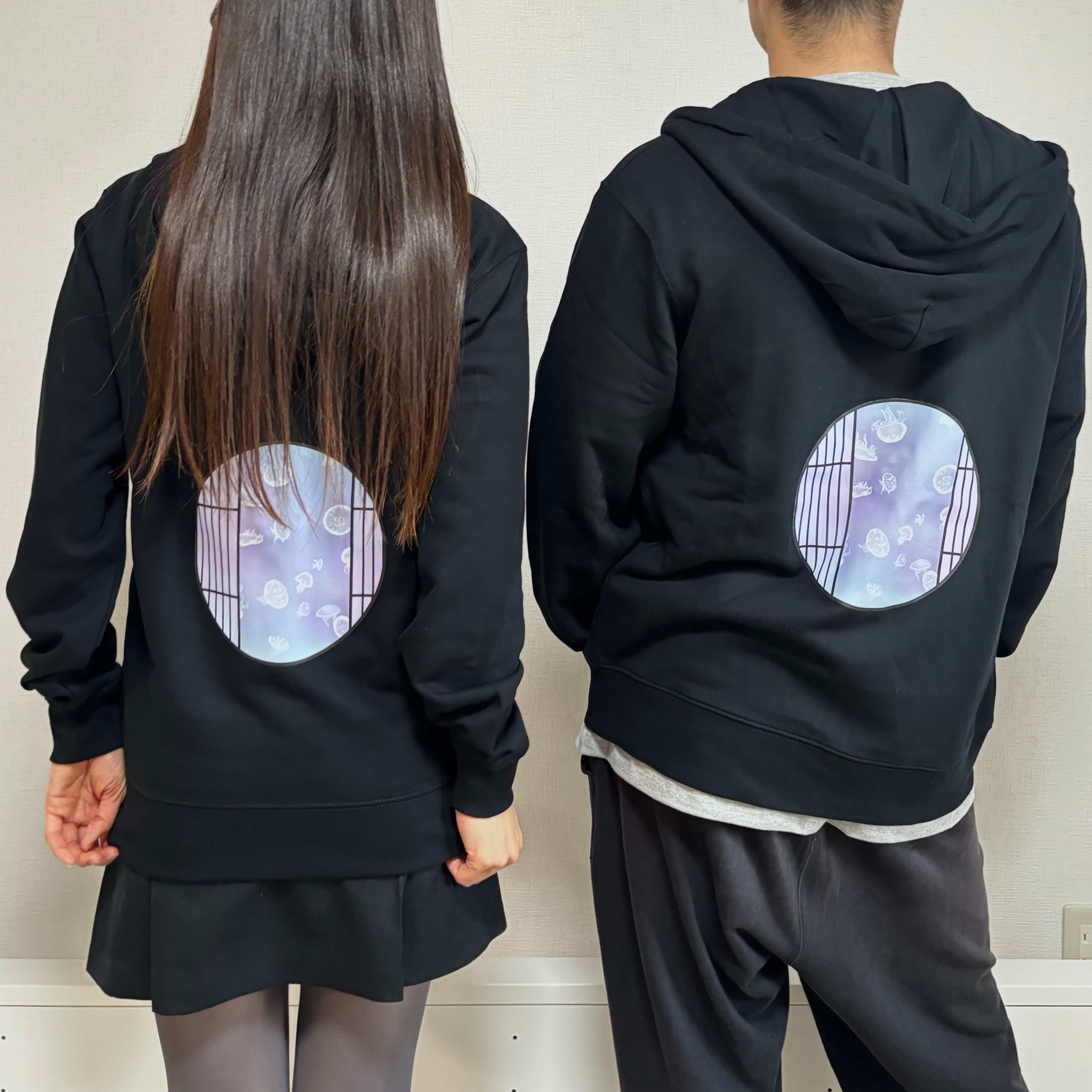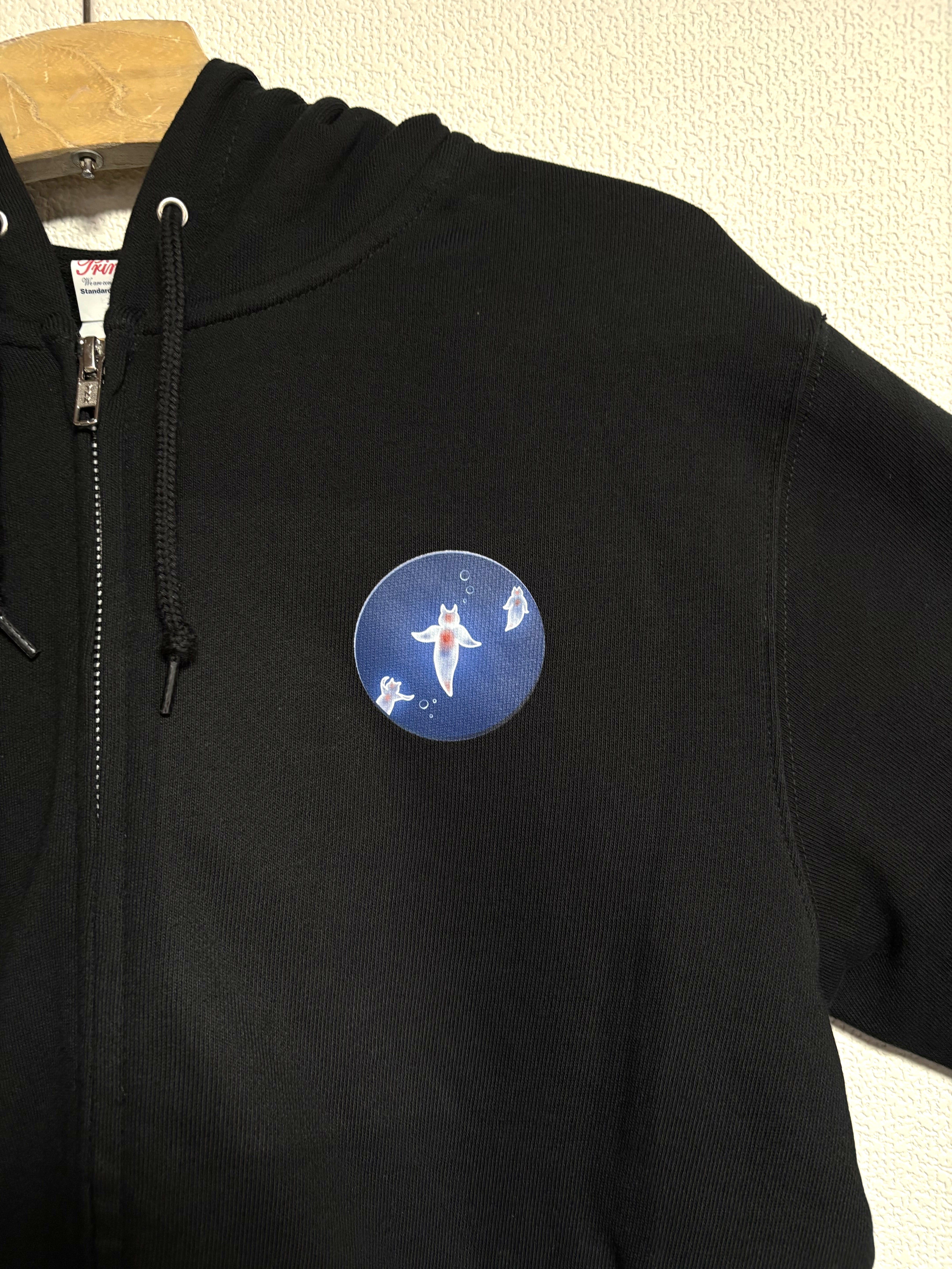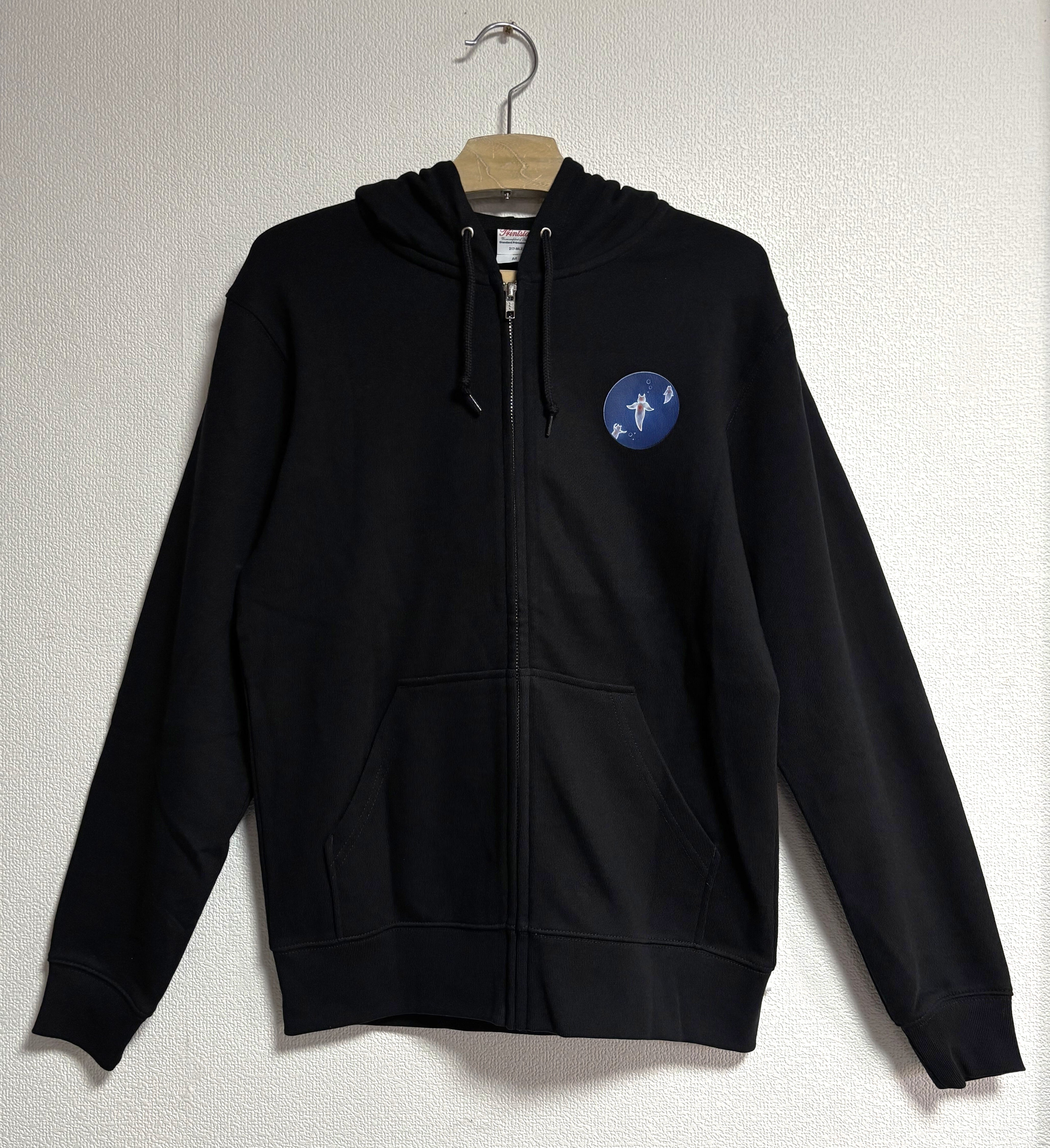 ●素材:綿100% 285g/m2 8.4oz 裏毛 ●サイズ:S~XL ●カラー:ブラック ●機能:2重フード ●男女兼用