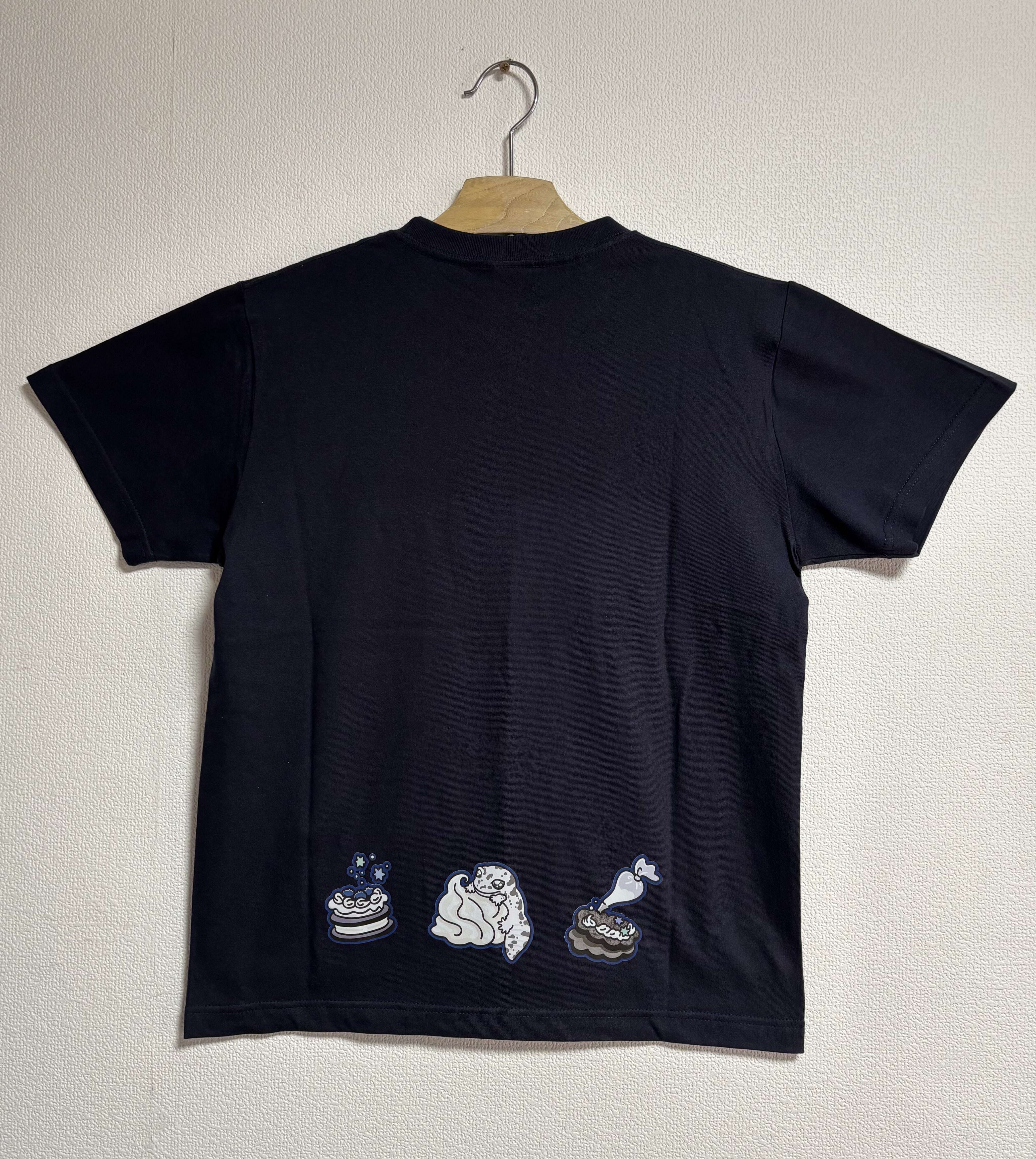 ●素材:セミコーマ糸(綿100%) ●サイズ:S~XL ●カラー:ネイビー ●デザイン位置:左胸、背面裾