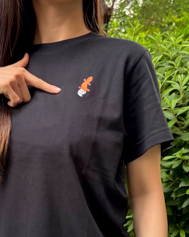 ●素材:セミコーマ糸(綿100%) ●サイズ:S~XL ●カラー:スミ ●デザイン位置:左胸、背面右肩